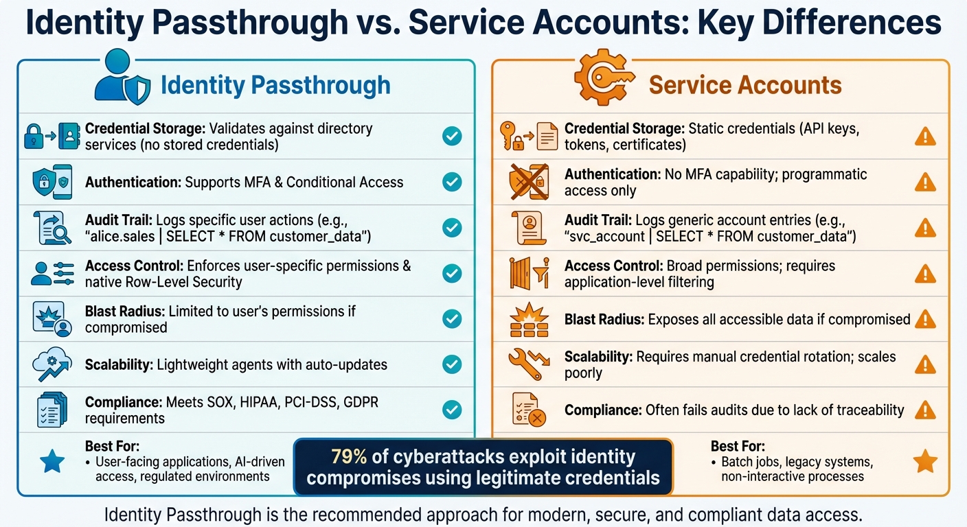 Identity Passthrough vs Service Accounts: Security and Compliance Comparison