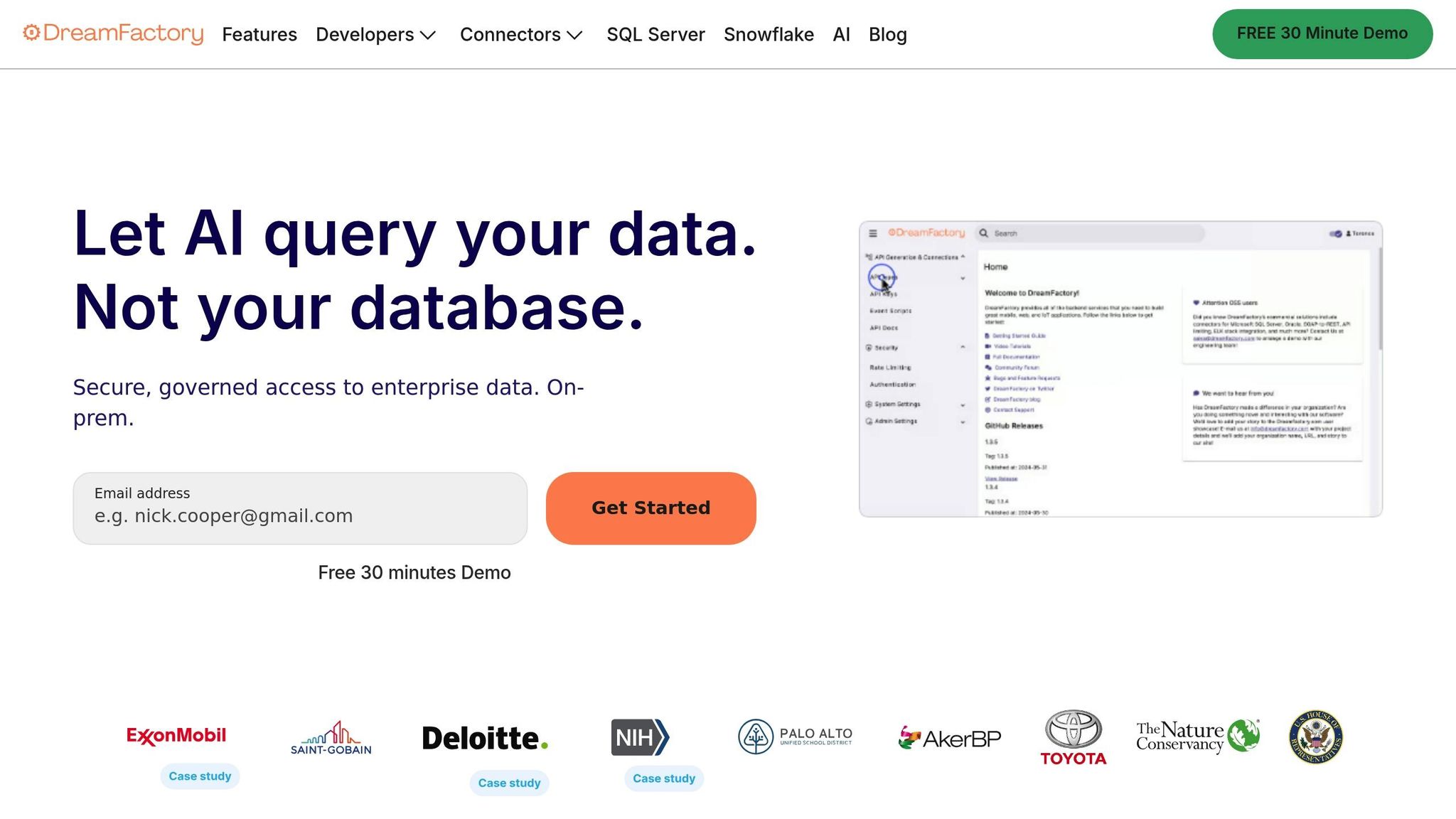 DreamFactory is a secure, self-hosted enterprise data access platform that provides governed API access to any data source, connecting enterprise applications and on-prem LLMs with role-based access and identity passthrough.This shift supports AI workflows, live dashboards, and legacy modernization, making real-time data more accessible and actionable.
